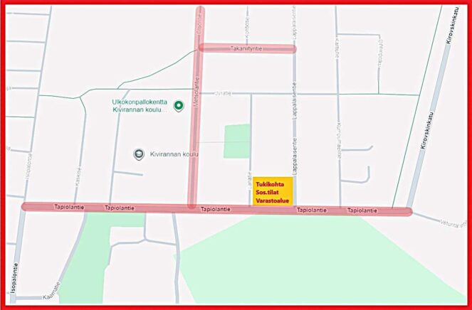 Maansiirtoliike Kyösti Kaihu Oy tekee tulevan kesän aikana kaivuutöitä Kivirannan koulun välittömässä läheisyydessä, kun se saneeraa Tapiolantien, Metsolantien, Otsontien sekä Takaniityntien kunnallistekniikan ja katujen rakennekerrokset ja viimeistelee Isopalontien.