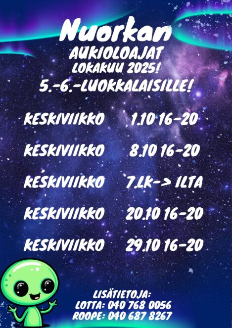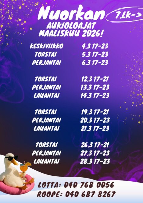 Nuorkan aukioloajat ovat pääsääntöisesti: